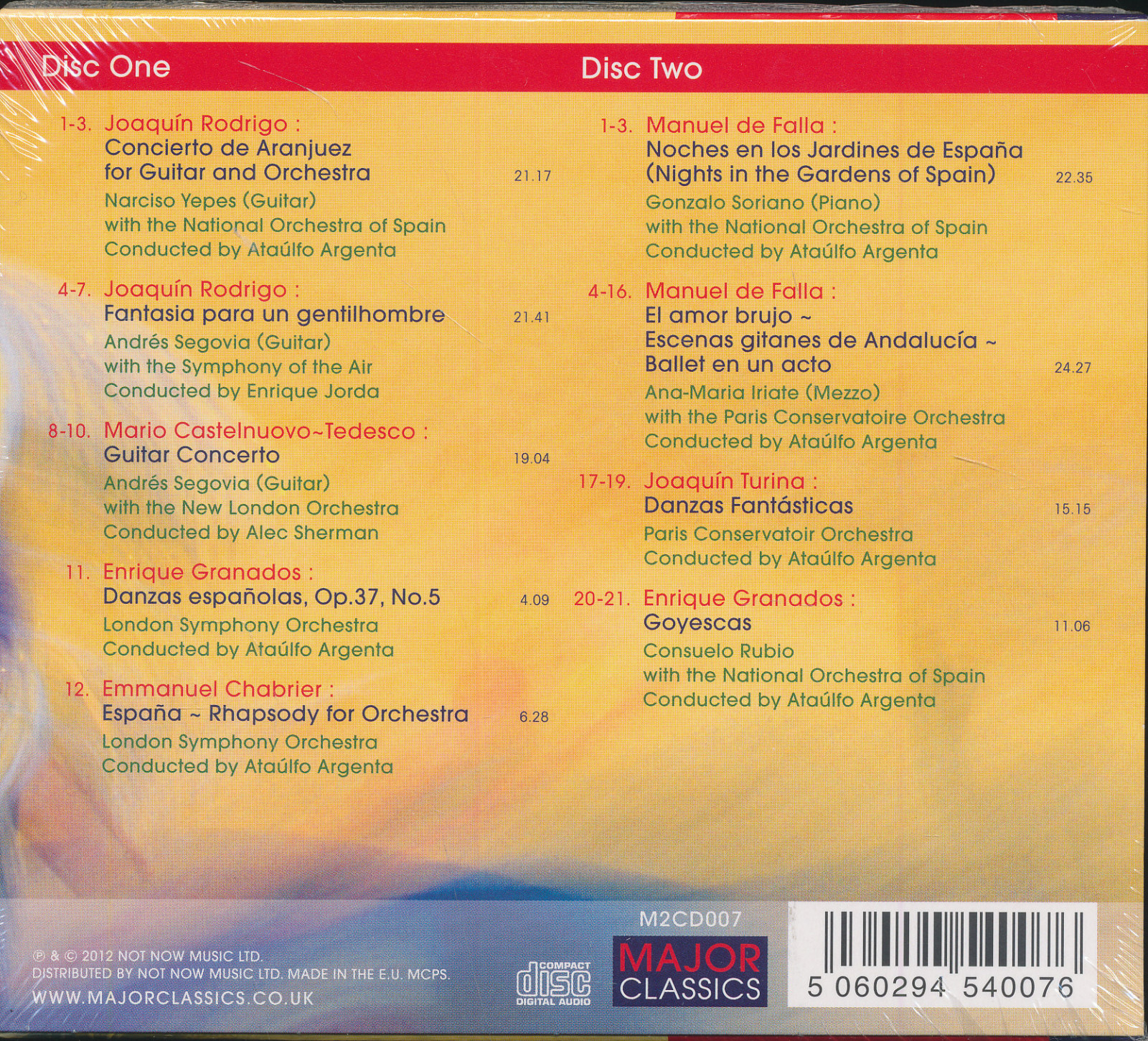 Concierto De Aranjuez For Guitar And Orchestra, Fantasia Para Un Gentilhombre, Guitar Concerto, Danzas Espanolas, Op. 37, No.5Espana - Rhapsody For Orchestra , Noches En Los Jardines De Espan, El Amor Brujo - Escenas Gitanes De Andalucia - Ballet En Un Acta , Danzas Fantásticas, Goyescas