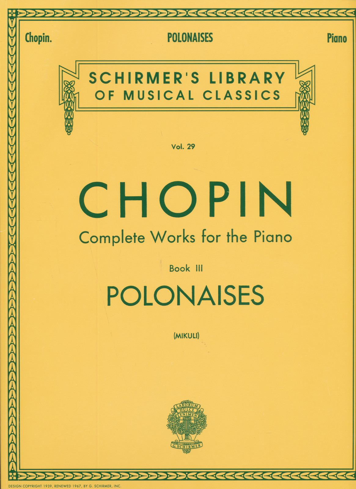 Polonaise-Fantaisie In A-Flat Major, Op. 61Polonaise In A-Flat Major, Op. 53Polonaise In B-Flat Major, Op. 71, No. 2Polonaise In C Minor, Op. 40, No. 2Polonaise In C-Sharp Minor, Op. 26, No. 1Polonaise In D Minor, Op. 71, No. 1Polonaise In E-Flat Minor, Op. 26, No. 2Polonaise In F Minor, Op. 71, No. 3Polonaise In F-Sharp Minor, Op. 44Polonaise In G-Sharp Minor, KK IVa, No. 3Polonaise In A Major “Military,” Op. 40, No. 1