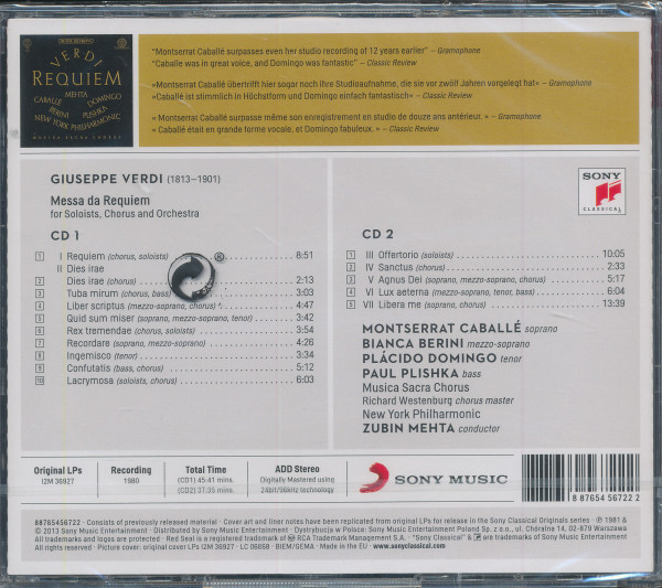 Montserrat Caballé (soprano), Bianca Berini (mezzo), Placido Domingo (tenor), Paul Plishka (bass), Musica Sacra Chorus & New York Philharmonic Orchestra, Zubin Mehta