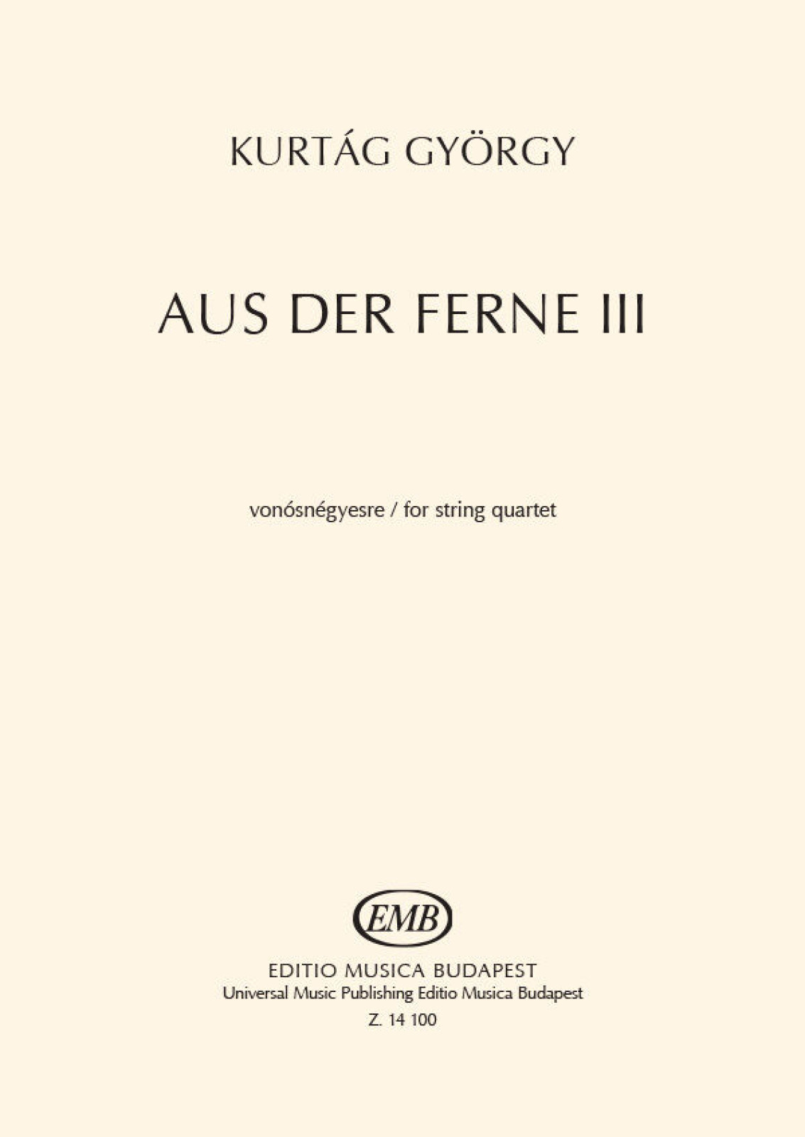 Kurtág György: Aus der Ferne III - vonósnégyesre (játszópartitúra) (1991)