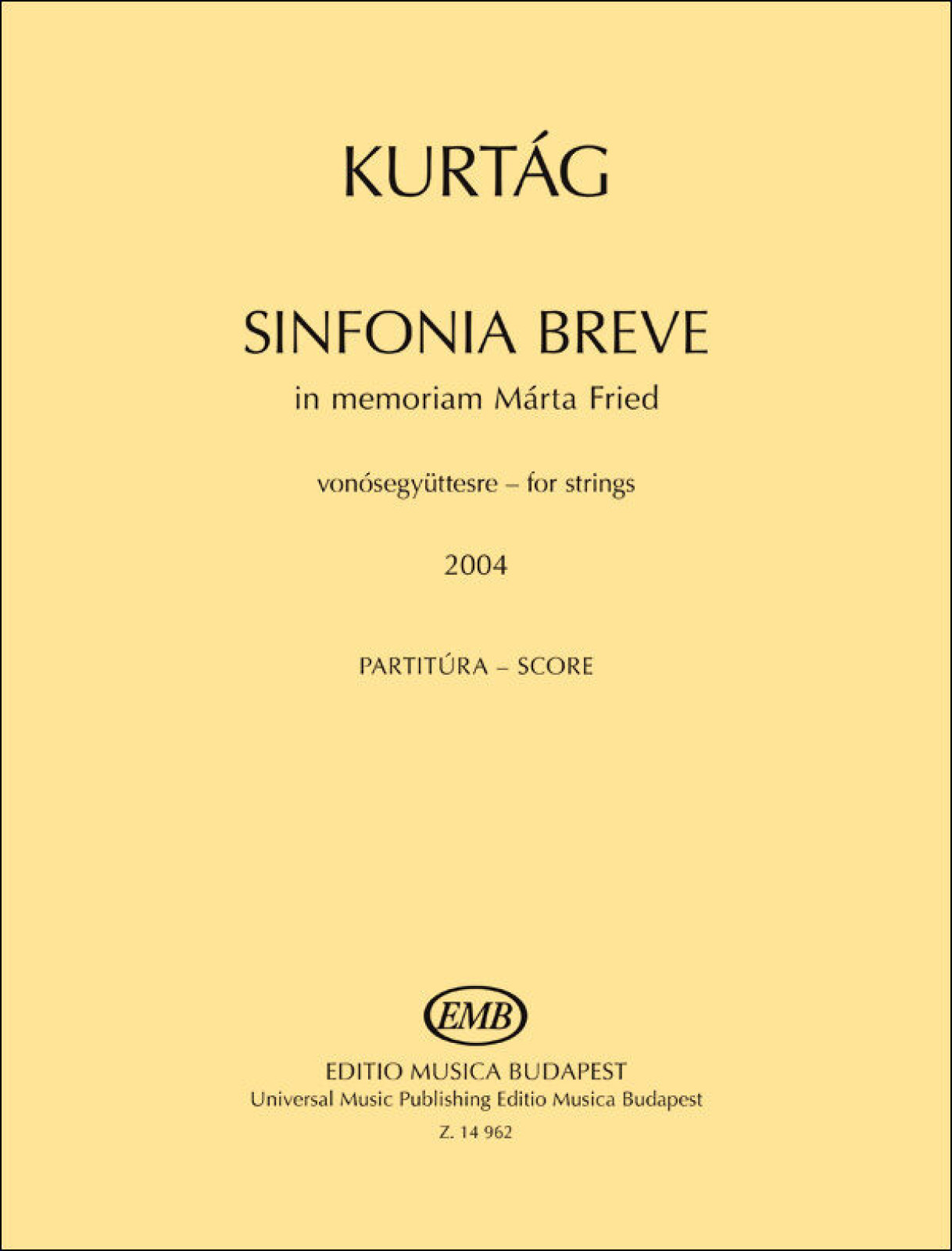 Kurtág György: Sinfonia breve - In memoriam Márta Fried (2004) - vonósegyüttesre (2016)