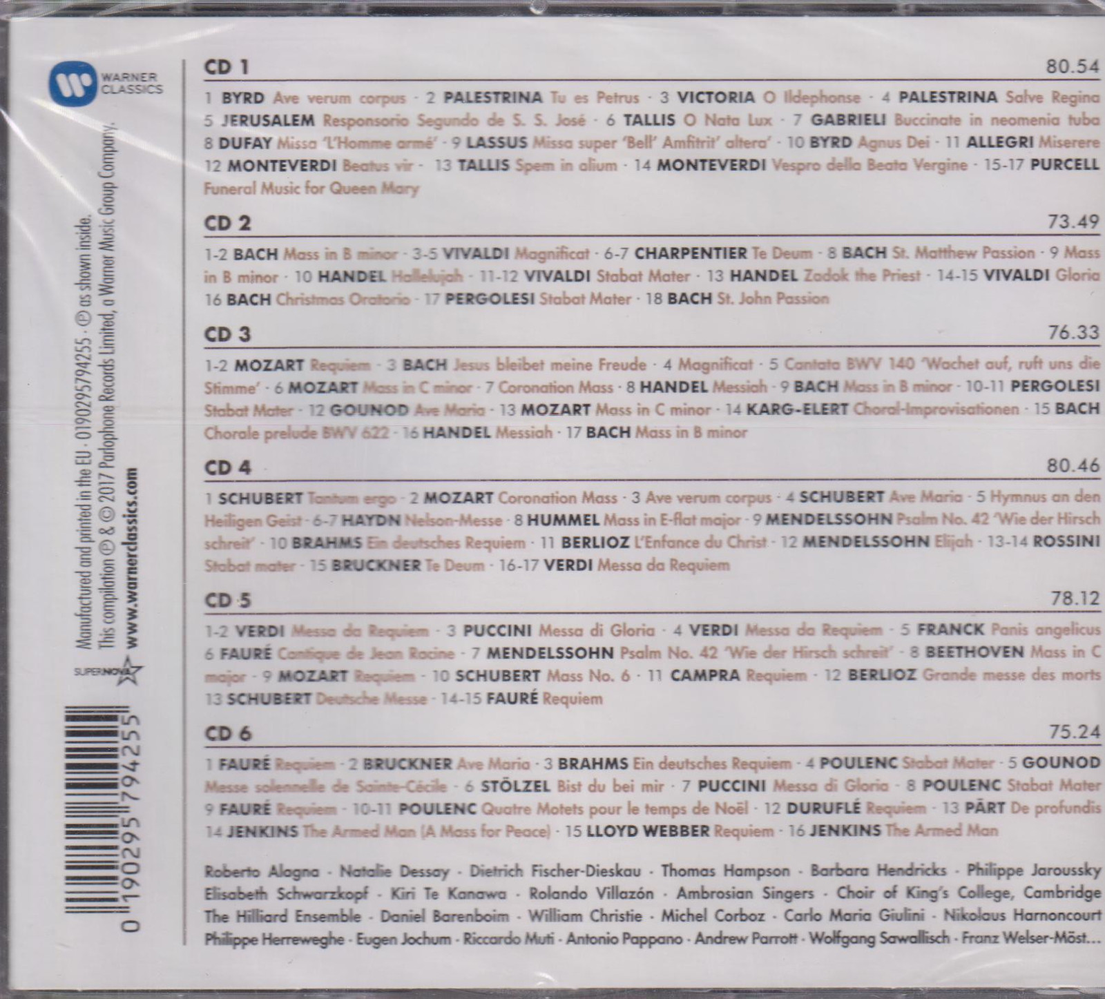 Byrd, Palestrina, Victoria, Lassus, Monteverdi, Charpentier, Bach, Poulenc, Pärt