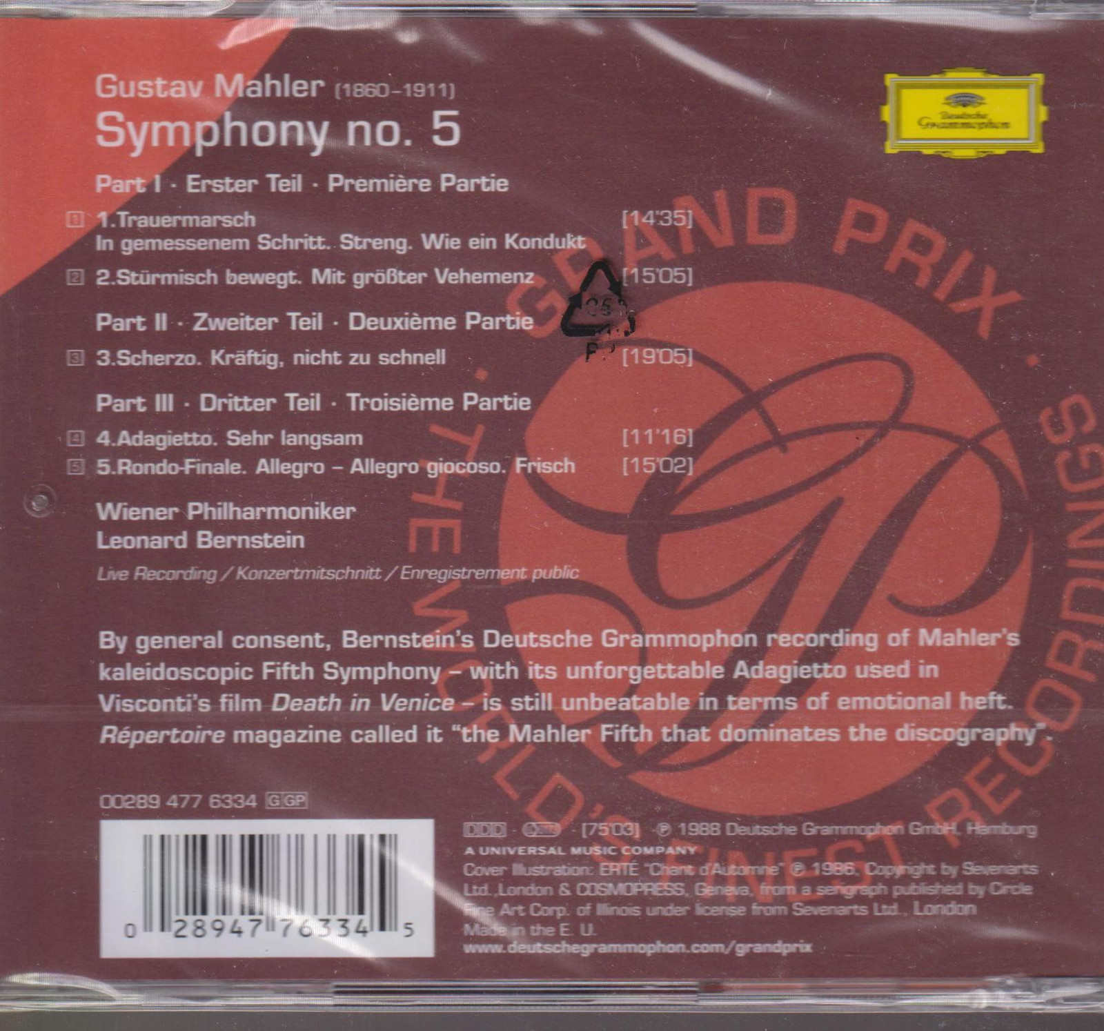 I. TrauermarschII. Stürmisch bewegt, mit größter VehemenzIII. Scherzo. Kräftig, nicht zu schnellIV. Adagietto. Sehr langsamV. Rondo-Finale. Allegro