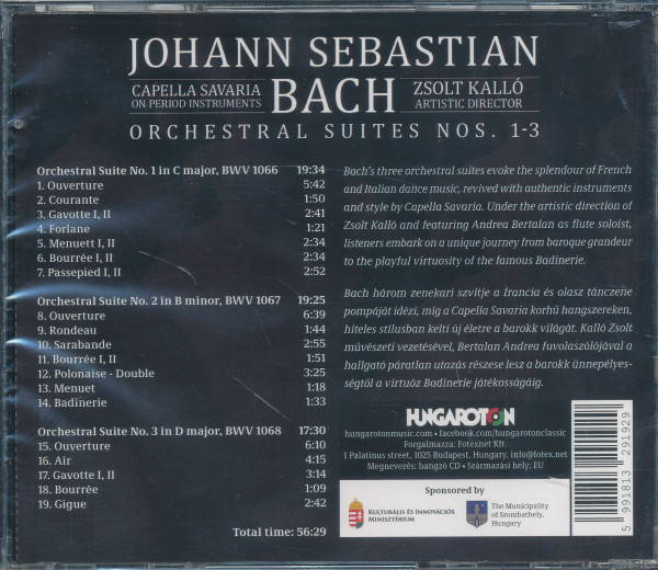 Orchestral Suite No. 1 in C major, BWV1066, Orchestral Suite No. 2 in B minor, BWV1067, Orchestral Suite No. 3 in D major, BWV1068