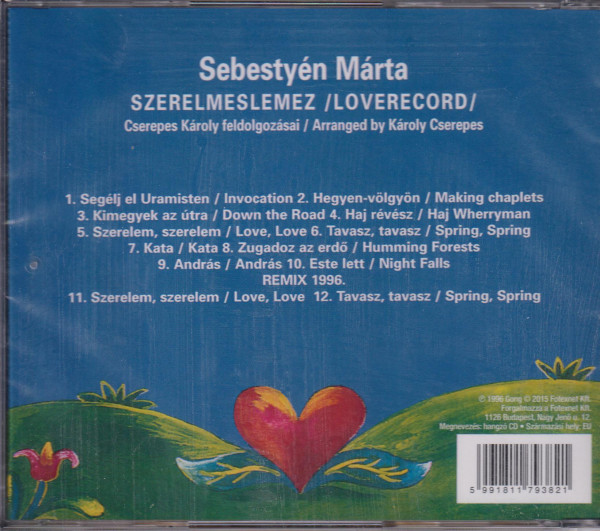 A Szerelmeslemez (angol címén: Loverecord) Sebestyén Márta és Szörényi Levente közös albuma, amely eredetileg 1985-ben jelent meg a Favorit kiadónál. A lemez a magyar népzene és a világzene egyik meghatározó alkotása, amelyen Sebestyén Márta énekét modern zenei alapok és a Vízöntő zenekar kísérete egészíti ki.1. Segélj el Uramisten, 2. Hegyen-völgyön, 3. Kimegyek az útra, 4. Haj révész, 5. Szerelem, szerelem, 6. Tavasz, tavasz, 7. Kata, 8. Zugadoz az erdő, 9. András, 10. Este lett, Remix 1996: 11. Szerelem, szerelem; 12. Tavasz, tavasz